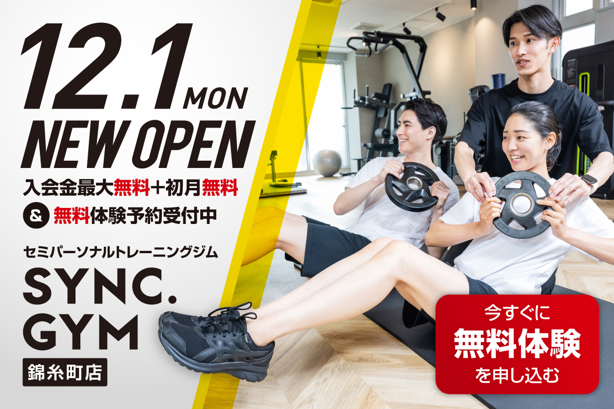 錦糸町エリアに新たに誕生するSYNC.GYM 錦糸町店は、お客様が集い、心と身体のバランスを整えるための「コミュニティ」として、心地よい時間を過ごせる空間を目指しています。